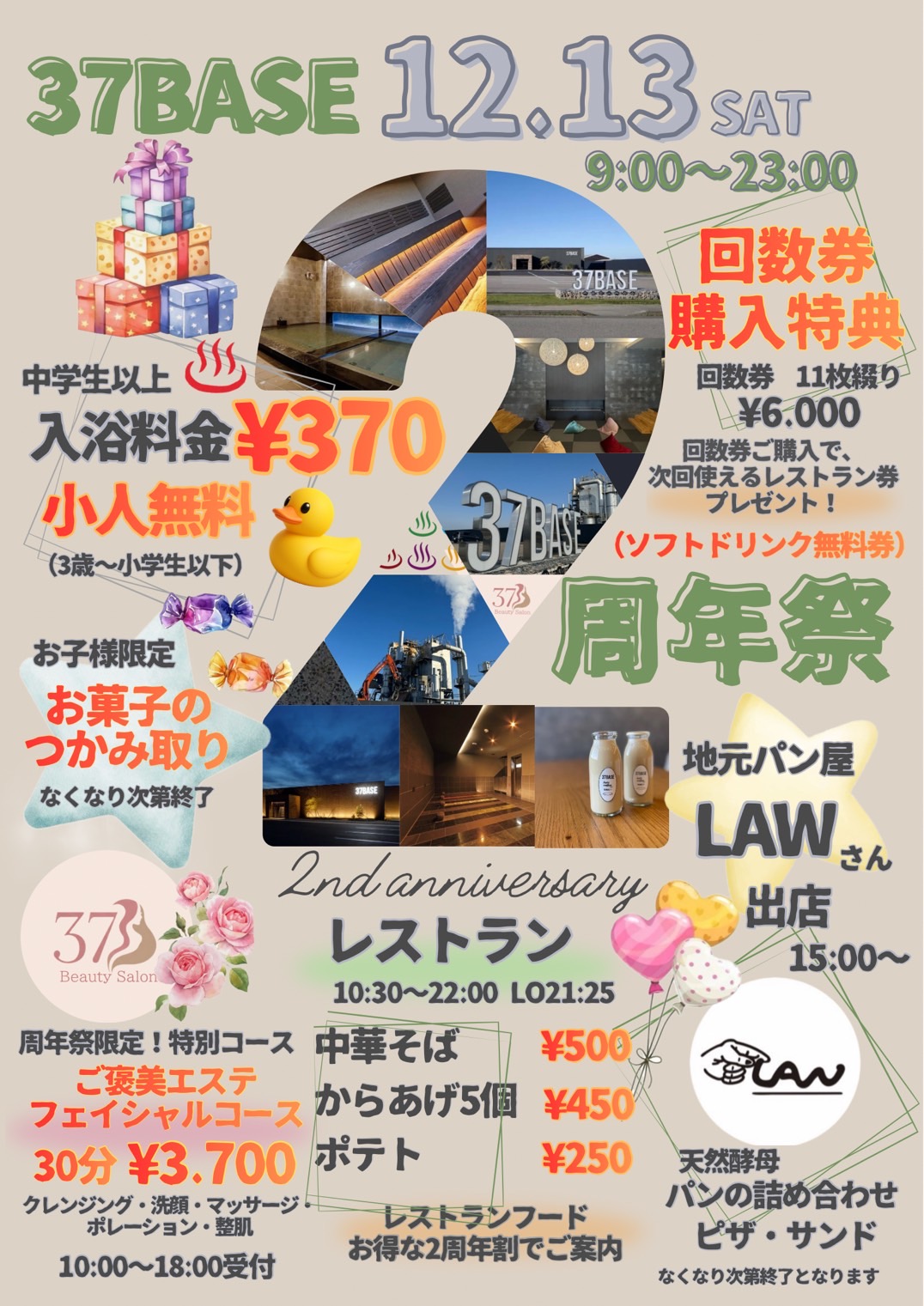 皆様のおかげで2周年を迎えることができました。今後とも37BASEを宜しくお願いいたします!